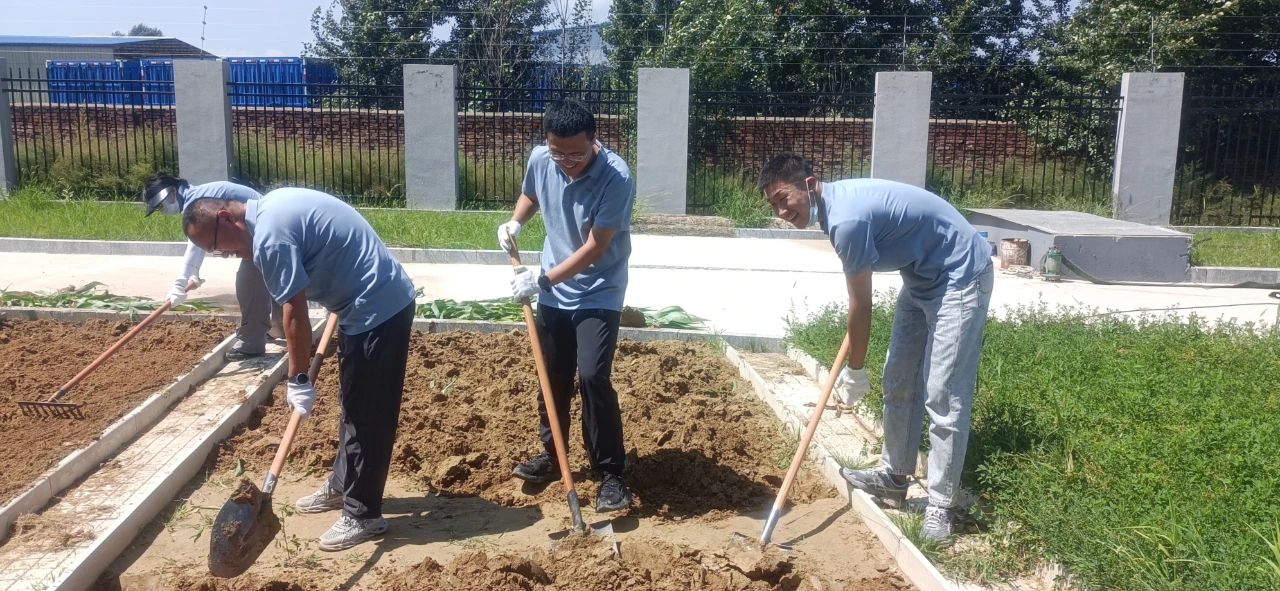 随后,公司领导班子带领非在岗值班员工前往呼和浩特市至托清工业园区长输再生水项目中间泵站,开展了一场劳动实践活动。公司计划利用这片空闲土地,打造一个绿色蔬菜水果供应基地。活动当天,气温高达30摄氏度,烈日炎炎,大家汗水不断却干劲不减。领导班子率先挥锹动土,全体员工也纷纷拿起工具,兴致勃勃地投入到垦地劳动中。有人抡起锄头翻整土地,有人弯腰捡拾碎石,有人负责耙平土壤,还有人跟进施肥。期间,笑语不断,大家分工明确、配合默契,尽管汗水浸透了衣背,阳光晒红了脸庞,劳累也让手臂酸软,但没有人停下手中的活儿,反而个个争先、相互鼓励,现场气氛热烈非常。这场集体劳动不仅让大家体验到耕耘的快乐,也在汗水和协作中进一步增强了团队的凝聚力和战斗力。